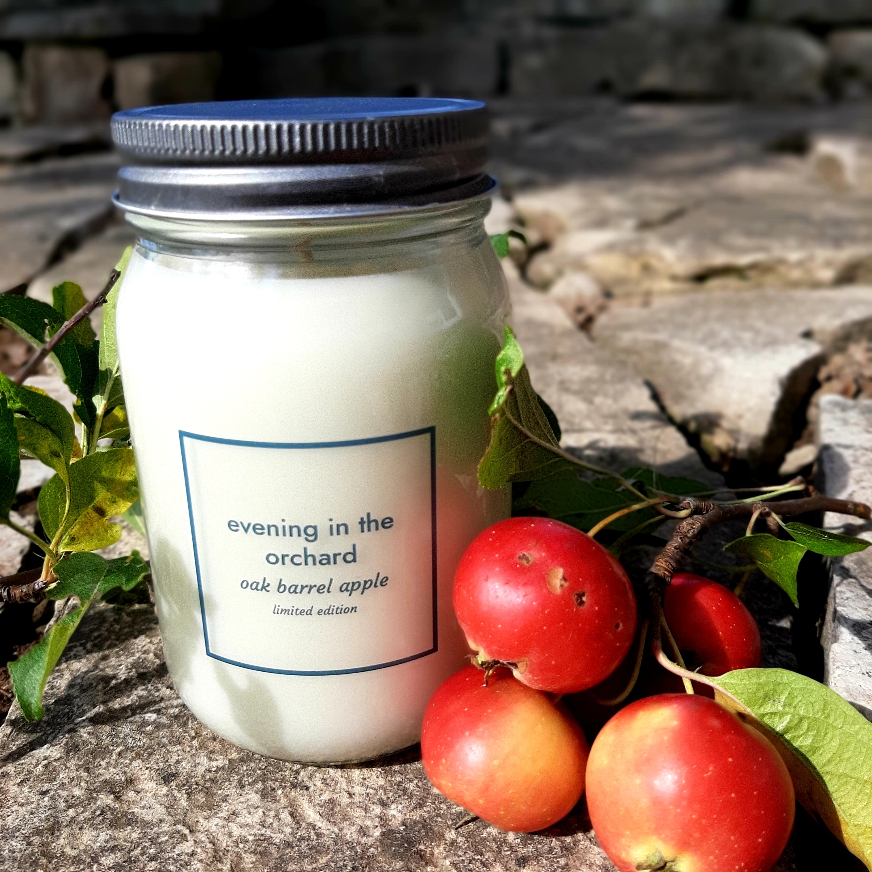 100% hand poured soy in a 16oz glass mason jar with pewter metal lid. Made in Canada in small batches.
